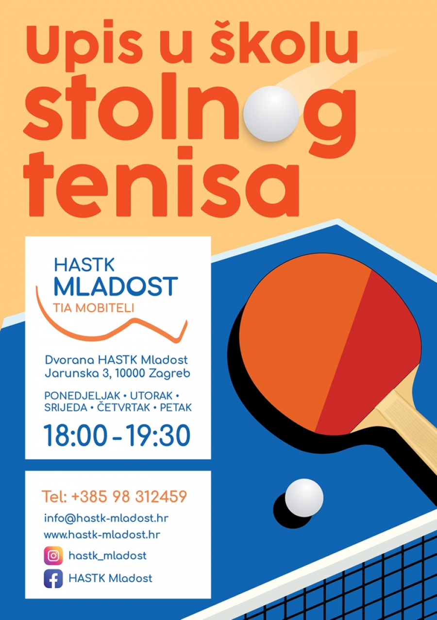 Započinjemo s upisom novih članova u Stolnotenisku školu. Dođite i pridružite nam se. Očekuju vas iskusni profesionalni treneri, ugodan ambijent u prekrasnoj dvorani te puno igre, zabave i novih prijateljstava.